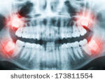 - Zahn 38: Verlagerter Weisheitszahn mit „Schmutzwinkel“ zwischen den Zähnen.