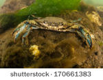 | | Atlantic blue crab [Callinectes sapidus, syn.: C. sapidus acutidens, Portunus diacantha] | Blaukrabbe {f} |